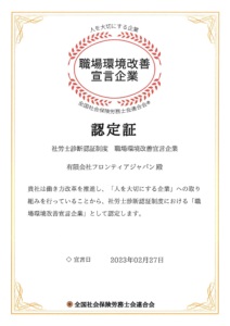 いつもありがとうございます、フロンティアジャパンです!この度、弊社は「人が働きやすい企業」として、以...
