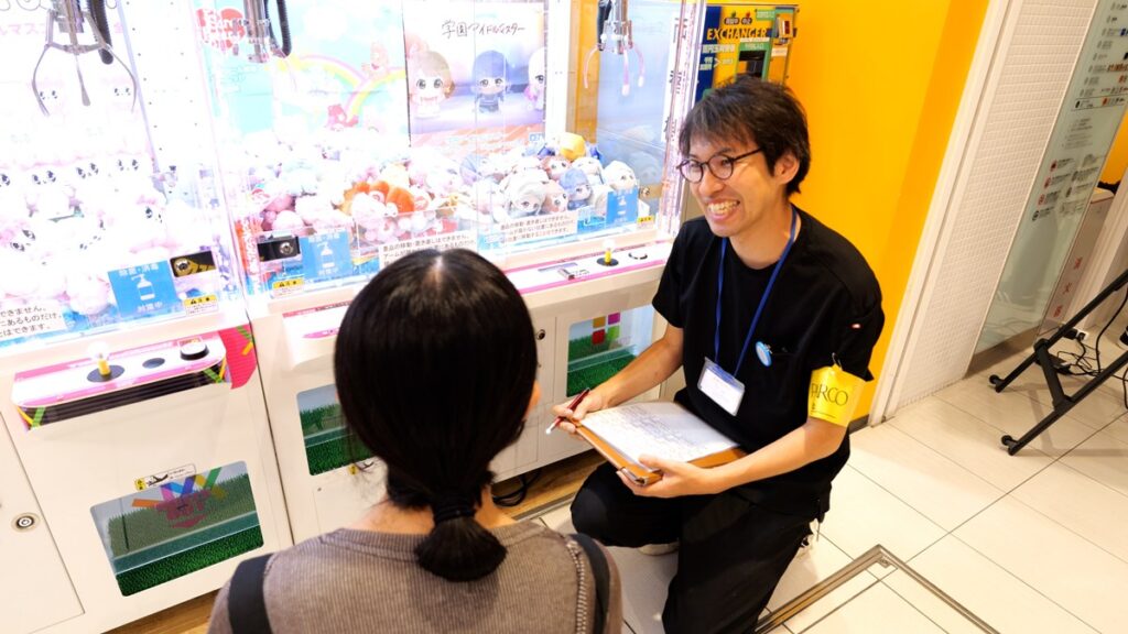 社長のお母さんと私の祖母が仲良くしていた縁で紹介してもらい、軽い気持ちで応募したのがきっかけでした。クレーンゲームは好きでしたが、レンタルリース業の経験はなくて。ただ、「働くならまずは3年やってみよう」と思い、思い切って飛び込みました。最初は不安もありましたが、「何とか頑張ってみたい」という気持ちが強かったです。